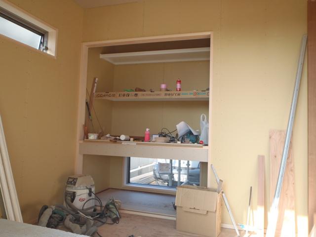 ・内部木工事、和室造作を終え、階段造作を進め、2階へ