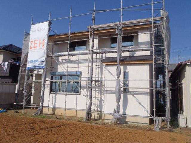 ・外部工事、サイディング貼りが完了し、軒天下地組みを行って