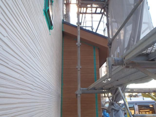 ・外部工事、軒天ボード貼り、破風鼻隠し窓モールサイディングを