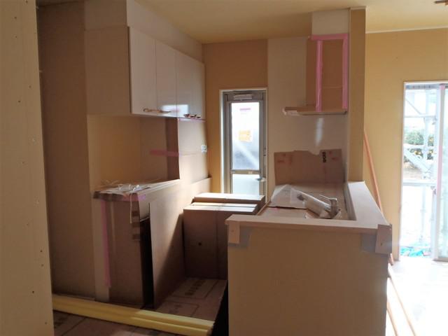 ・外部工事、サイディングコーキング打ち、軒天塗装完了し、板金工事 へと進めていきます。 ・内部木工事、小屋裏・壁ボード貼り、階段造作を終えました。 カウンター・笠木類取付、棚類取付、和室天井仕上げ材貼りを 行っていきます。