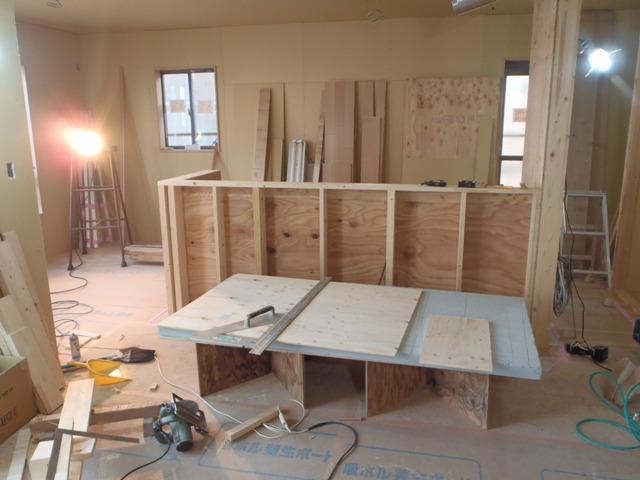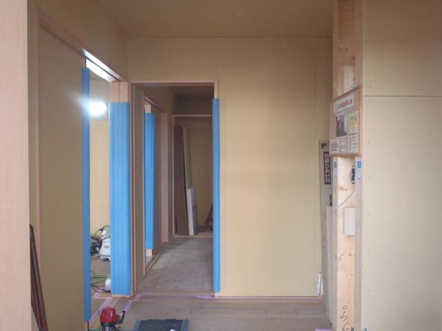 ・内部木工事、1階ドア枠開口枠取付、壁ボード貼りが進み