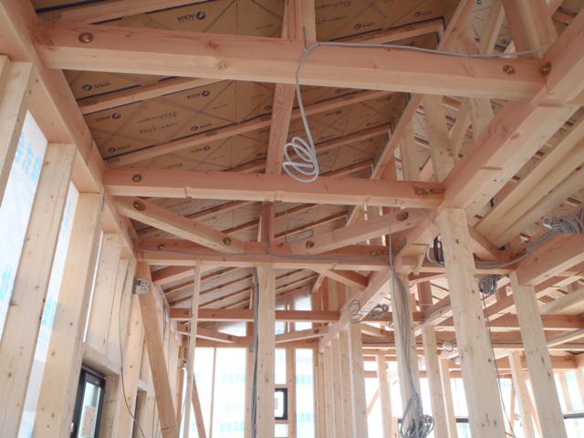 を行います。 吹き付け後、天井下地組み、内部造作へと進み