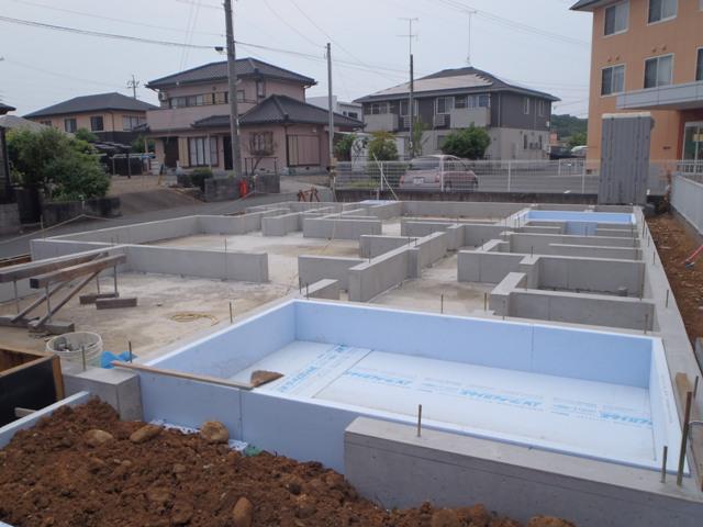 ☆先週の工事☆ 基礎工事(天端レベラー型枠解体、玄関・ポーチタイル下地 コンクリート、境界見切り壁、他) 上棟準備 ☆今週の予定工事☆ 基礎工事(境界壁型枠解体、片付け) 土台据え、1階床下地組み、上棟準備 先行足場組み 上棟