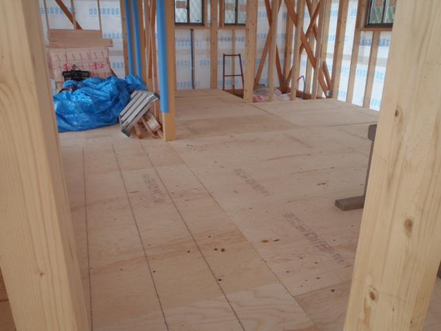 木工事(1階床断熱材入れ、下地合板本締め、外部胴縁、他)