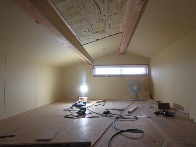 ☆先週の工事☆ 木工事(壁下地合板及びプラスターボード貼り、小屋裏床・壁・ 天井造作、他) 外部塗装 板金・樋掛け ☆今週の予定工事☆ 木工事(壁下地合板及びプラスターボード貼り、棚類取付、他) 外部器具付け