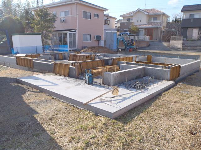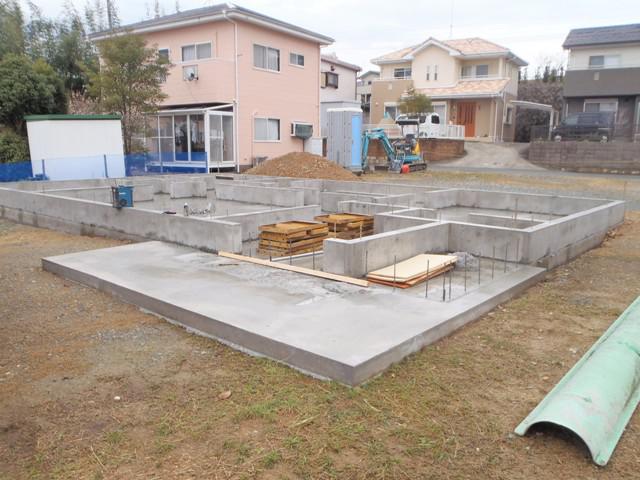 玄関・ポーチタイルコンクリートを打ち終え基礎工事完了となりました。