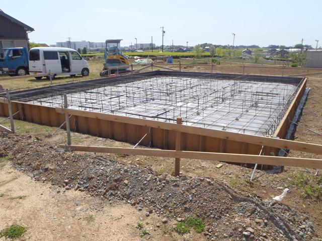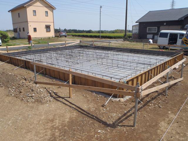 組み状況、型枠との間隔など確認)を受けベースコンクリートを打ち