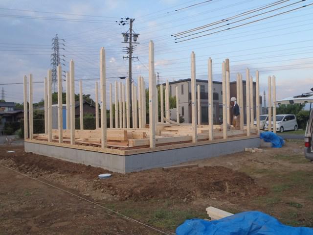 上棟に向け、土台据え、床下地組み、構造材・下地木材搬入と 上棟準備を行い、いよいよ上棟を迎えます。当日は柱・梁組と 骨組みを組み立て屋根下地まで予定しています。 建物高さ・間取り間隔など確認できます。
