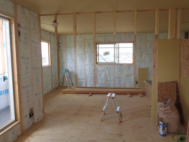 ☆先週の工事☆ 木工事(2階天井下地組み、天井断熱材入れ、天井ボード 貼り、壁断熱材入れ、他) ☆今週の予定工事☆ 木工事(1階天井下地組み、天井ボード貼り、壁断熱材入れ、 他)