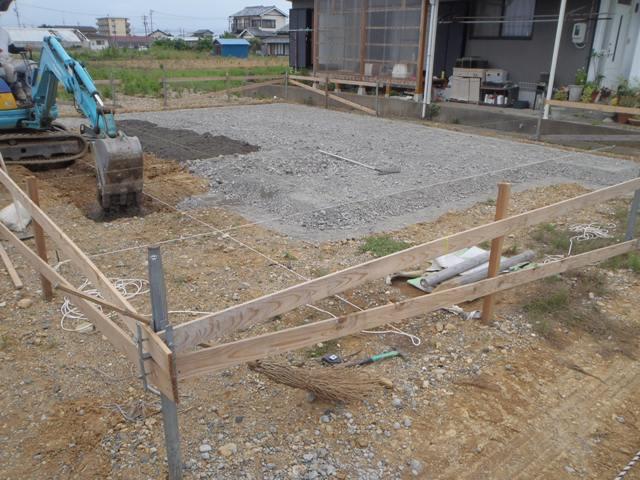 ☆先週の工事☆ 地鎮祭 基礎工事(丁張り・掘削・砕石地業、他) ☆今週の予定工事☆ 基礎工事(ベース型枠組み、鉄筋組み、ベースコンクリート打設、他)