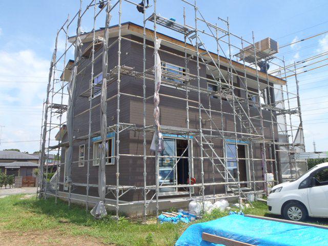 ・外部工事、サイディングコーキング打ちを終え、軒天(軒天部)塗装