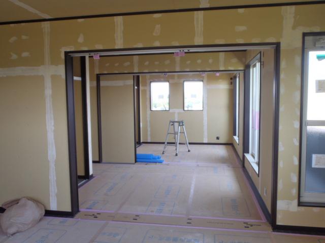 ・内装仕上げ工事へと入り、天井・壁プラスターボードのジョイント部・