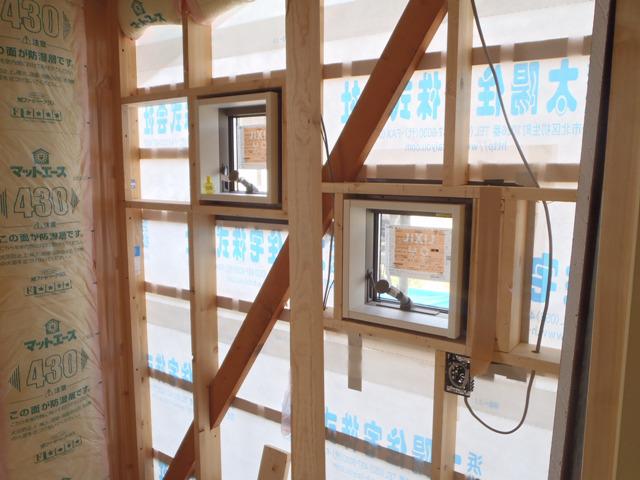 ・木工事、外壁下地打ち、玄関廻り内部造作、2階ドア開口枠