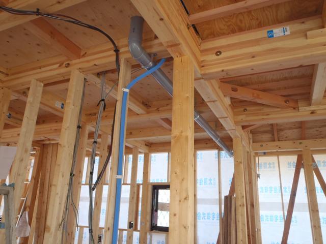 及び軒天ボード貼り、他) 電気配線・配管、換気ダクト