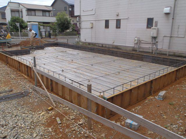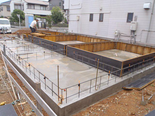 機構JIOによる配筋検査・ベースコンクリート打ち、立ち上り型枠