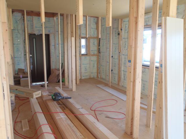 ☆先週の工事☆ 木工事(床フローリング貼り、窓枠組み立て、ドア開口枠組立 他) 道路拡張工事 ☆今週の予定工事☆ 木工事(床フローリング貼り、窓枠組立・ドア開口枠組立、他) 外壁工事(角コーナー取付、平板サイディング貼り、他)
