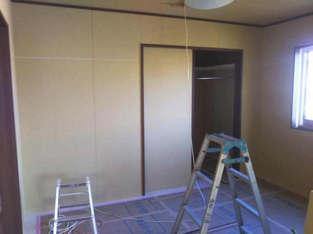 木工事(壁プラスターボード貼り、幅木・回し縁取付、建具吊込み