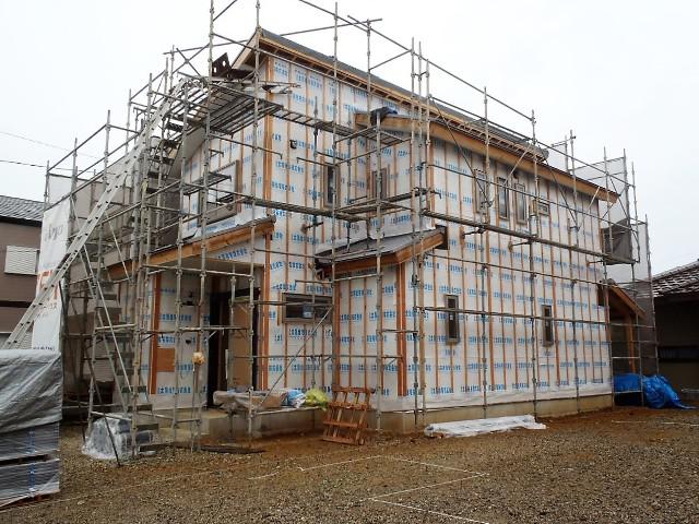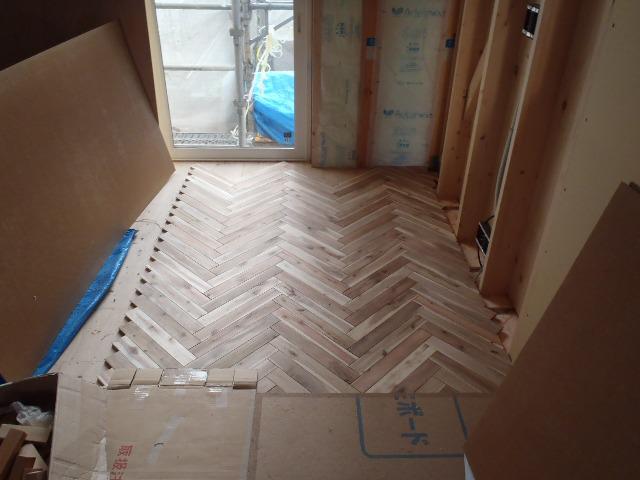 下地・軒天ボード貼り、2階フローリング貼りと外部・内部と造作進め