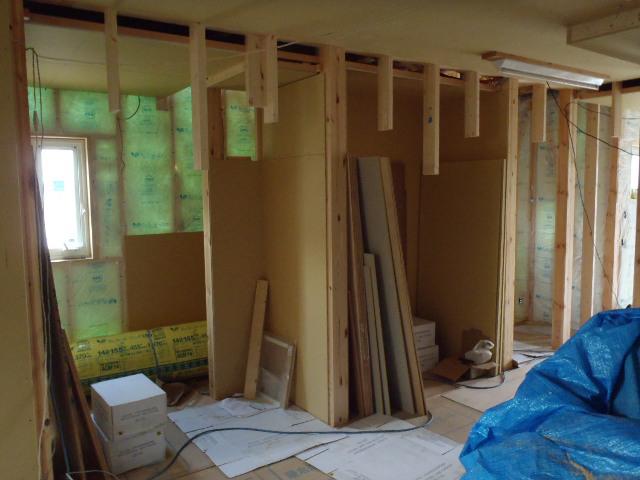 木工事(窓枠取付、壁下地合板・プラスターボード貼り、他)