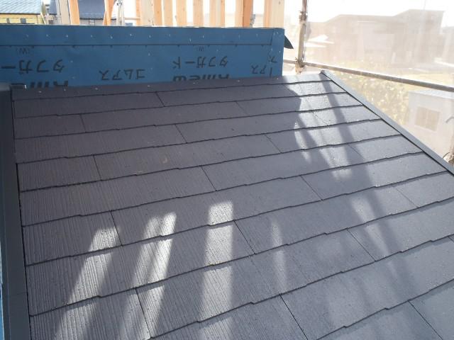 ・屋根カラーベスト荷揚げし、捨て板金を入れカラーベスト葺き行い