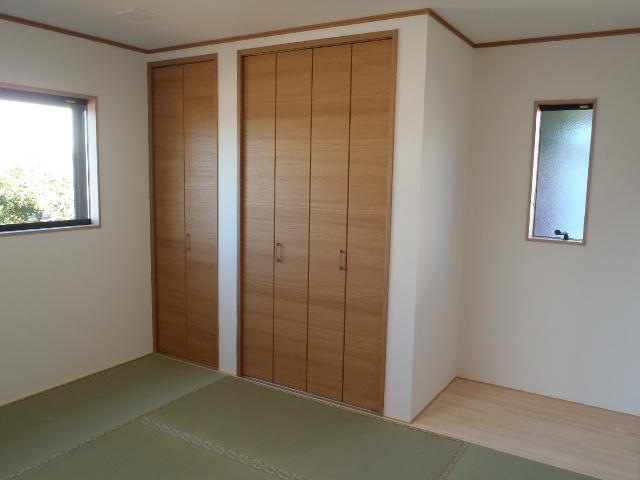 ・排水配管、通水試験、プロパンボンベ架台・ボンベ設置しボイラー 点火試験、勝手口造成 ・和室畳入れ、検査機構、完了検査を受けました。網戸・ベランダ 手摺笠木取付、階段手摺S・I・C棚取付を終えますと建物工事 完了となります。
