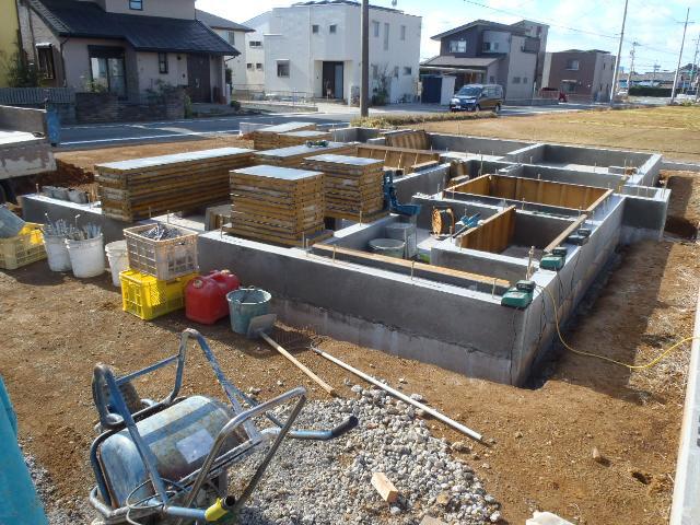 ・基礎工事、立上り部の型枠解体、基礎廻り埋め戻し整地、