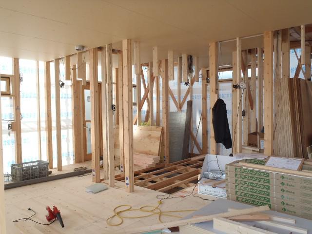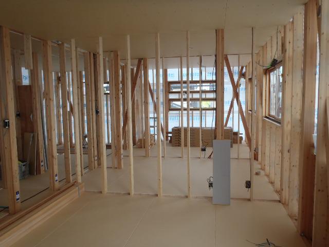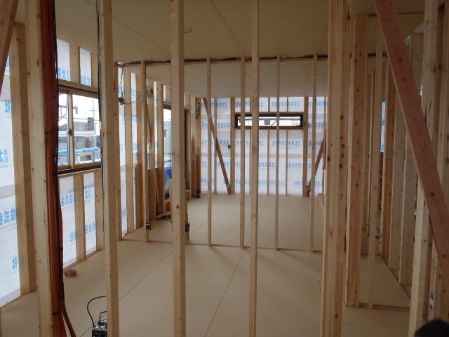 ☆先週の工事☆ 木工事(1階天井下地組み天井ボード貼り、外壁下地材 打ち、他) 内部給排水配管 ☆今週の予定工事☆ 木工事(外壁下地材打ち、軒天下地組み及び軒天軒天ボード 貼り、床フローリング貼り、他)