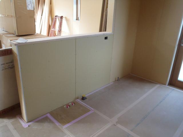 ・内部木工事、キッチン周り内部造作を進め 7日システムキッチン据付を