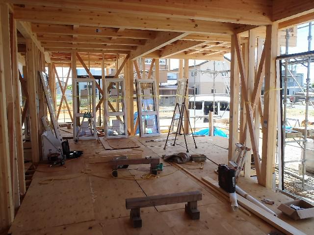 ☆先週の工事☆ 木工事(1階筋カイ・間柱入れ、窓開口、構造金物取付、他) 屋根工事(下屋ルーフィング敷き、瓦荷揚げ、瓦桟打ち、 瓦葺き) ☆今週の予定工事☆ 木工事(構造金物取付、構造面材取付、窓サッシ取付、 ベランダ下地造作、他) 屋根工事(瓦荷揚げ、瓦桟打ち、瓦葺き)