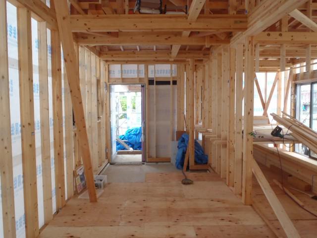 木工事(床断熱材入れ、床下地合板本締め、天井下地組み、