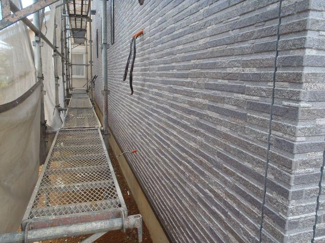 ・内部木工事、建具吊込み残しとなりました。 内装クロス貼り 2階を終え1階を進めています。 ・外壁工事へ入りました、建物角コーナー役物取付、スタート金具 取付し平板サイディングを張り進めています。
