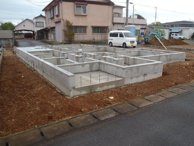 ・基礎工事、埋め戻し整地、タイル下地コンクリート打ちを行い完了と