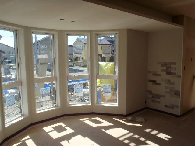 ・内装仕上げ、塗り壁上塗り完了、クロス貼りを進めています、