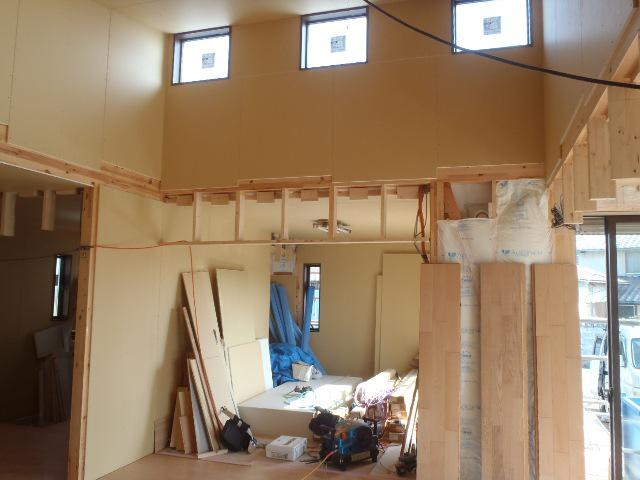・内部木工事、先週より引き続き、床フローリング貼り、壁ボード貼り