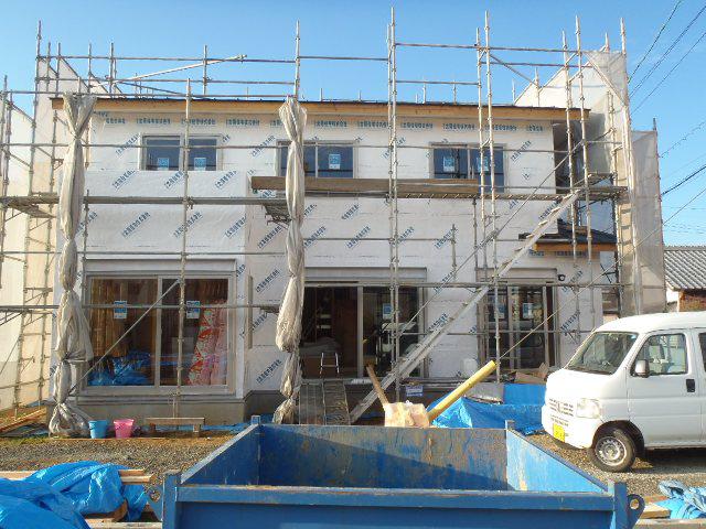 よりボード貼りを進めています。 電気工事、外壁下地シート