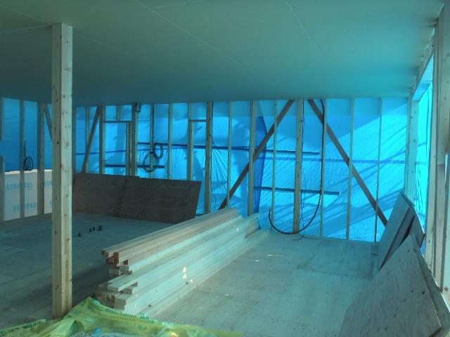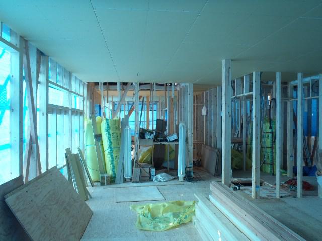 ☆先週の工事☆ 木工事(天井下地組み、天井断熱材入れ及びプラスターボード 貼り、他) 内部電気配線・配管、換気ダクト工事 ☆今週の予定工事☆ 木工事(天井下地組み、天井断熱材入れ及びプラスターボード 貼り、窓サッシ取付、他)
