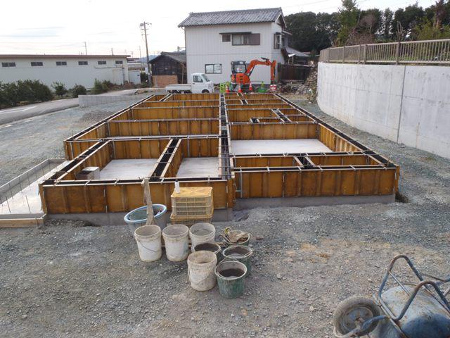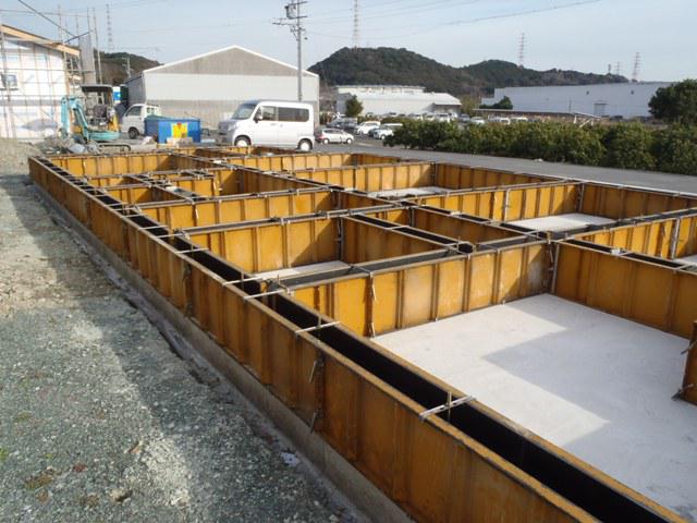 基礎工事(鉄筋組み、ベースコンクリート打ち、