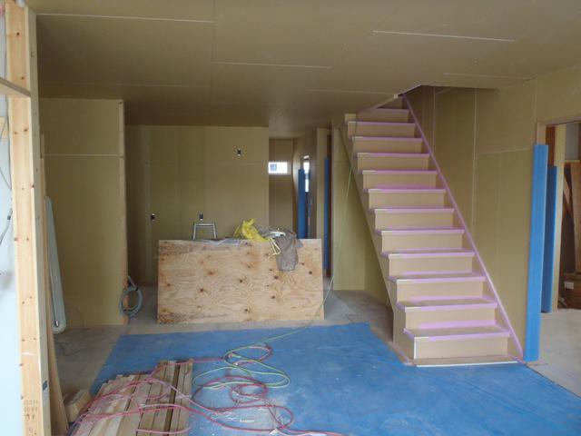 ☆先週の工事☆ 木工事(ドア開口枠取付、壁下地合板・プラスター ボード貼り、階段造作、固定棚類取付、幅木・回し縁 取付、他) 板金工事 ☆今週の予定工事☆ 木工事(ドア開口枠取付、壁ボード貼り、棚類加工取付 幅木・回し縁取付、他) 外部足場解体