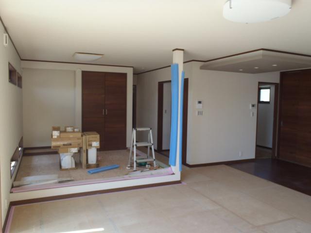 ・内部電気・衛生器具付け、外部エコキュート据付と進み、検査 機構による完了検査を受けました。 通電・通水排水試験、 太陽光発電 パワコン・接続箱等の仕上げを行い太陽光連携 床養生引上げ、ハウスクリーニングを行います、建物完成まで 後わずかとなりました。
