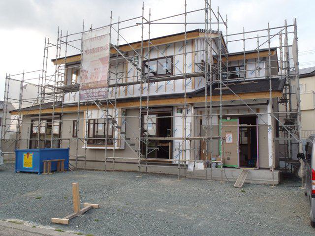 進めています、2階床下地ボード床フローリング貼りへと入って 行きます。外壁工事、建物7割程までサイディング貼りが進んで