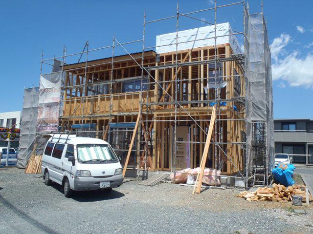 ☆先週の工事☆ 木工事(サッシ取付、2階天井下地組み、他) 外壁シート貼り ☆今週の予定工事☆ 木工事(2階天井下地組み、外壁下地材打ち、軒天下地 組み、他)