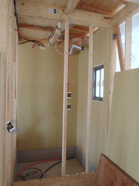 18日ユニットバス据付を行います。 内部電気配線配管・換気ダクト