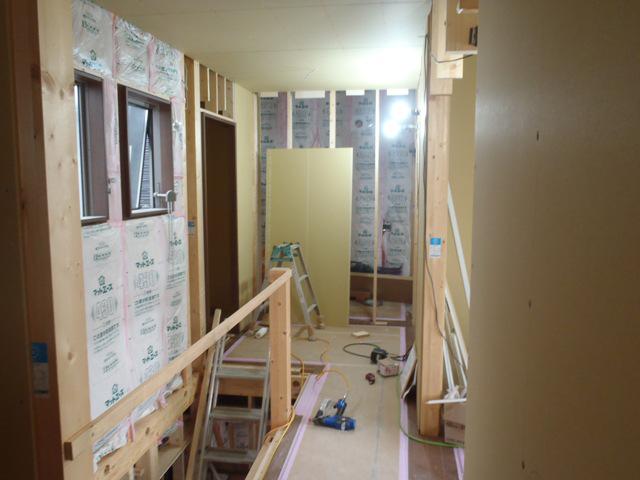 木工事(2階1階、壁下地合板・プラスターボード貼り、