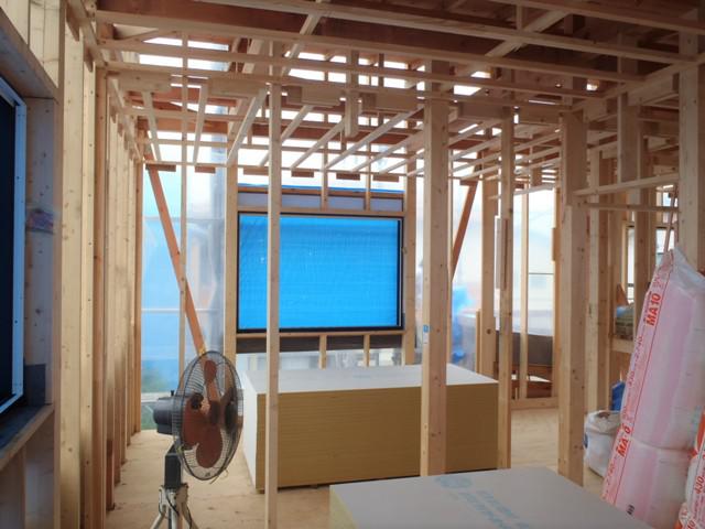 組み床断熱材入れ下地合板貼り及び外壁下地ボード貼りへ