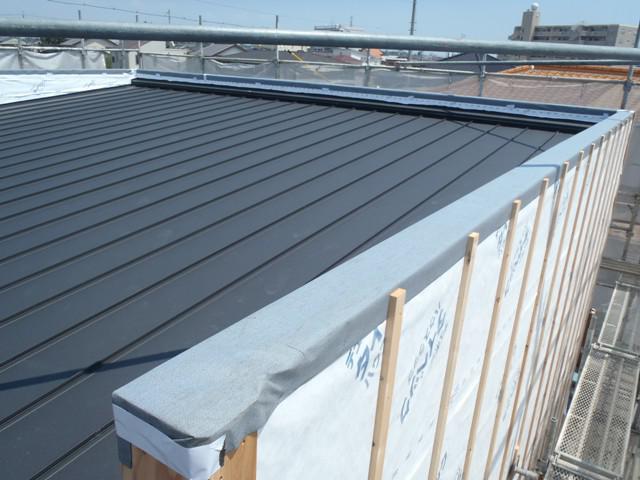 ・4日保証機構による外装下地検査を受け、外部木工事 外壁下地材打ち、軒天下地組み及び軒天ボード貼りを 終え、内部造作天井ボード貼り、壁断熱材入れ進めて います。床フローリング材が搬入され、断熱完了後フローリング 貼りを2階より進めます。 ・当社夏季休暇を9日より16日まで頂きます。