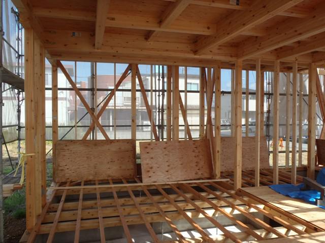 構造検査を受けました。 土台水切り、サッシ取付を行い