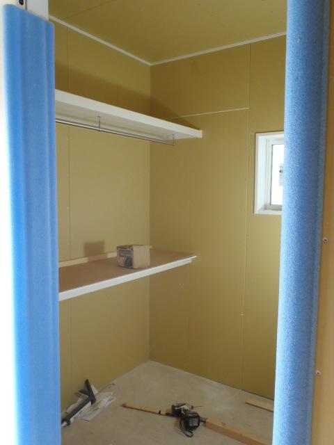 棚類取付、既製家具組立加工・取付と進め木工事も概ね完了と