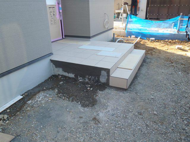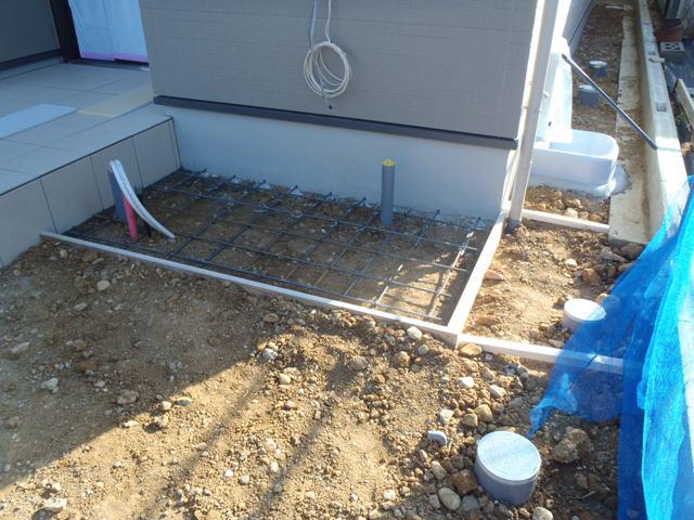 ・外部工事、玄関・ポーチタイル貼り、エコキュート配管及びベースコンクリート