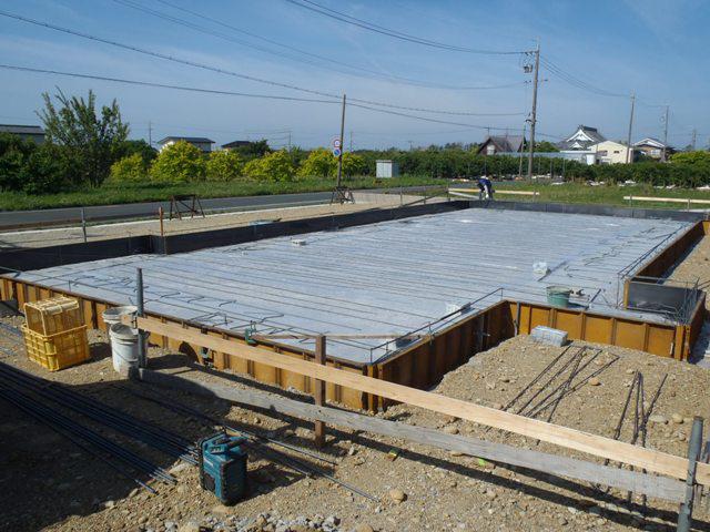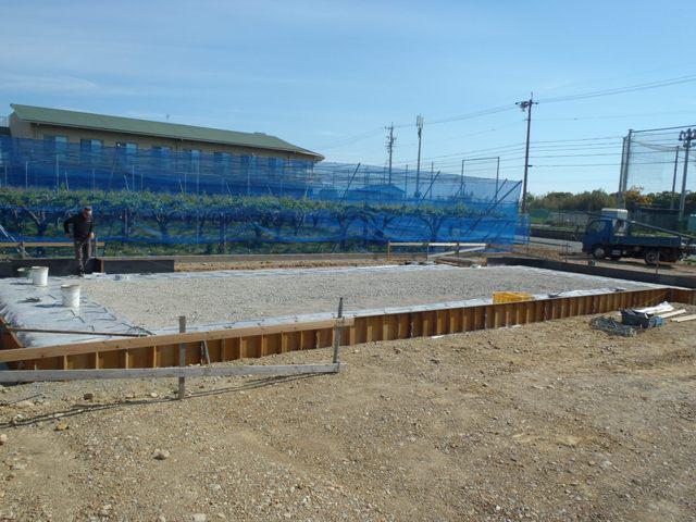・基礎工事、掘削・砕石地業、土間シート敷き、ベース型枠組み 鉄筋加工・鉄筋組みを進めています。配筋組み後 土間にげ 配管お願いします、進み状況連絡入れます。