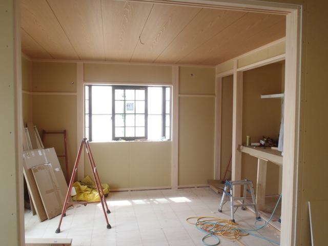 進めます。 内部木工事 和室造作 開口枠・天井材を納め